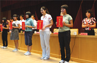 李俐萱女士向品學兼優(yōu)的學生頒發(fā)興業(yè)助學金。