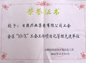 ·2016年4月,興業(yè)集團(tuán)被經(jīng)濟(jì)技術(shù)開發(fā)區(qū)授予“全區(qū)10+X工會(huì)工作項(xiàng)目化管理先進(jìn)單位”