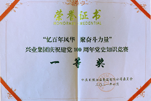 2022年6月,興業(yè)集團獲“憶百年風華 聚奮斗力量”慶祝建黨100周年黨史知識競賽一等獎